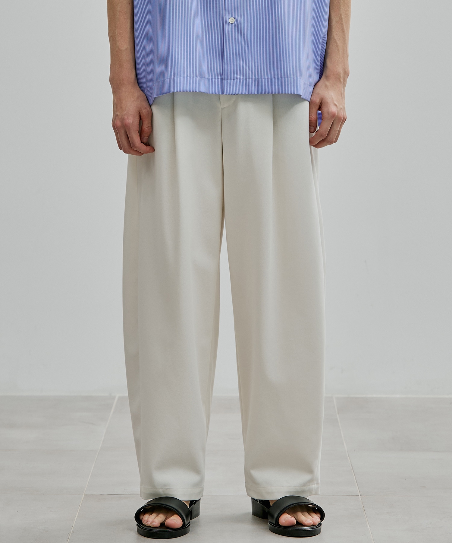 裾がスッキリしているため、ワイドパンツのようなリラックス感(抜け感)がありつつも、だらしなく見えないスタイルを叶えます。