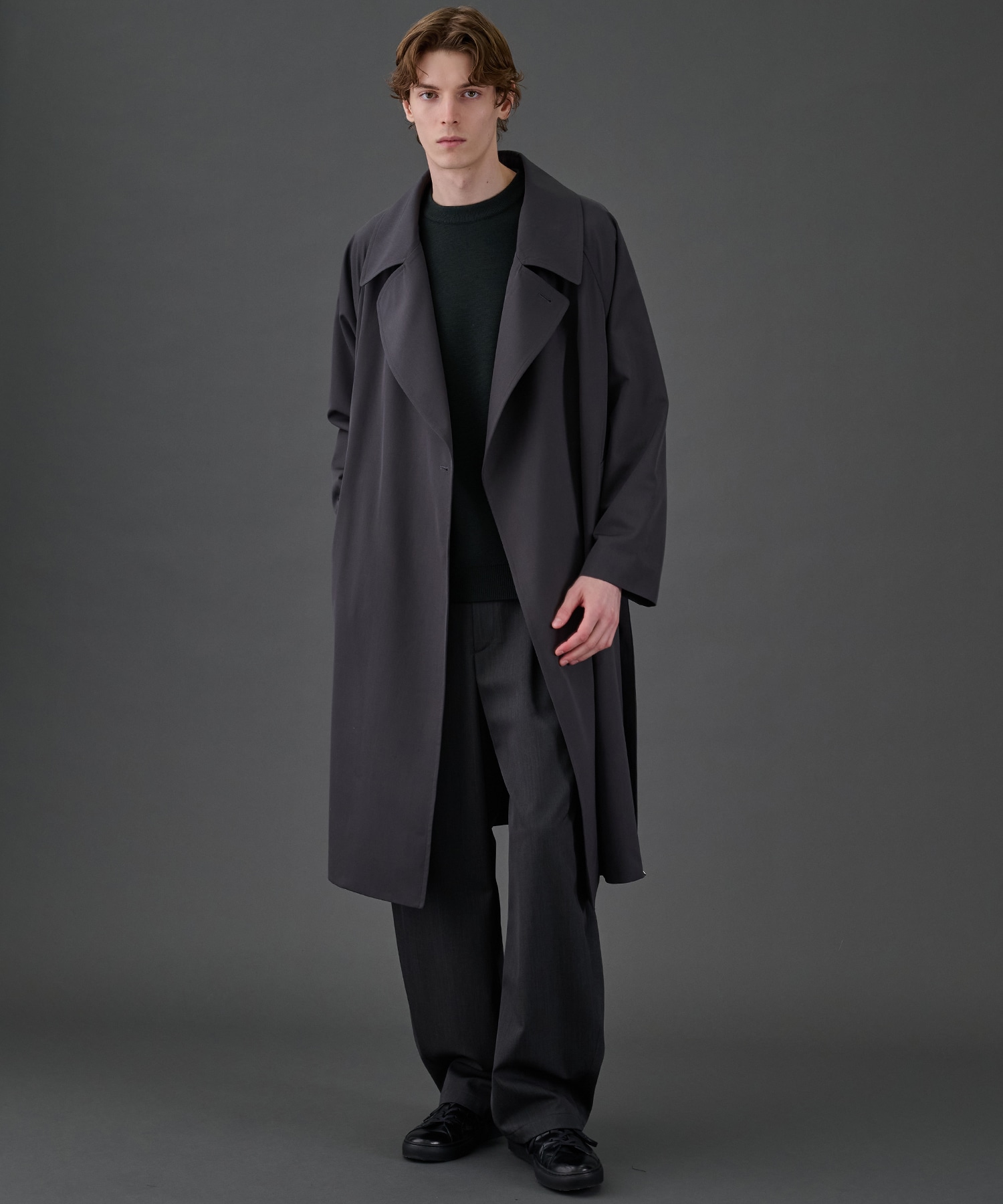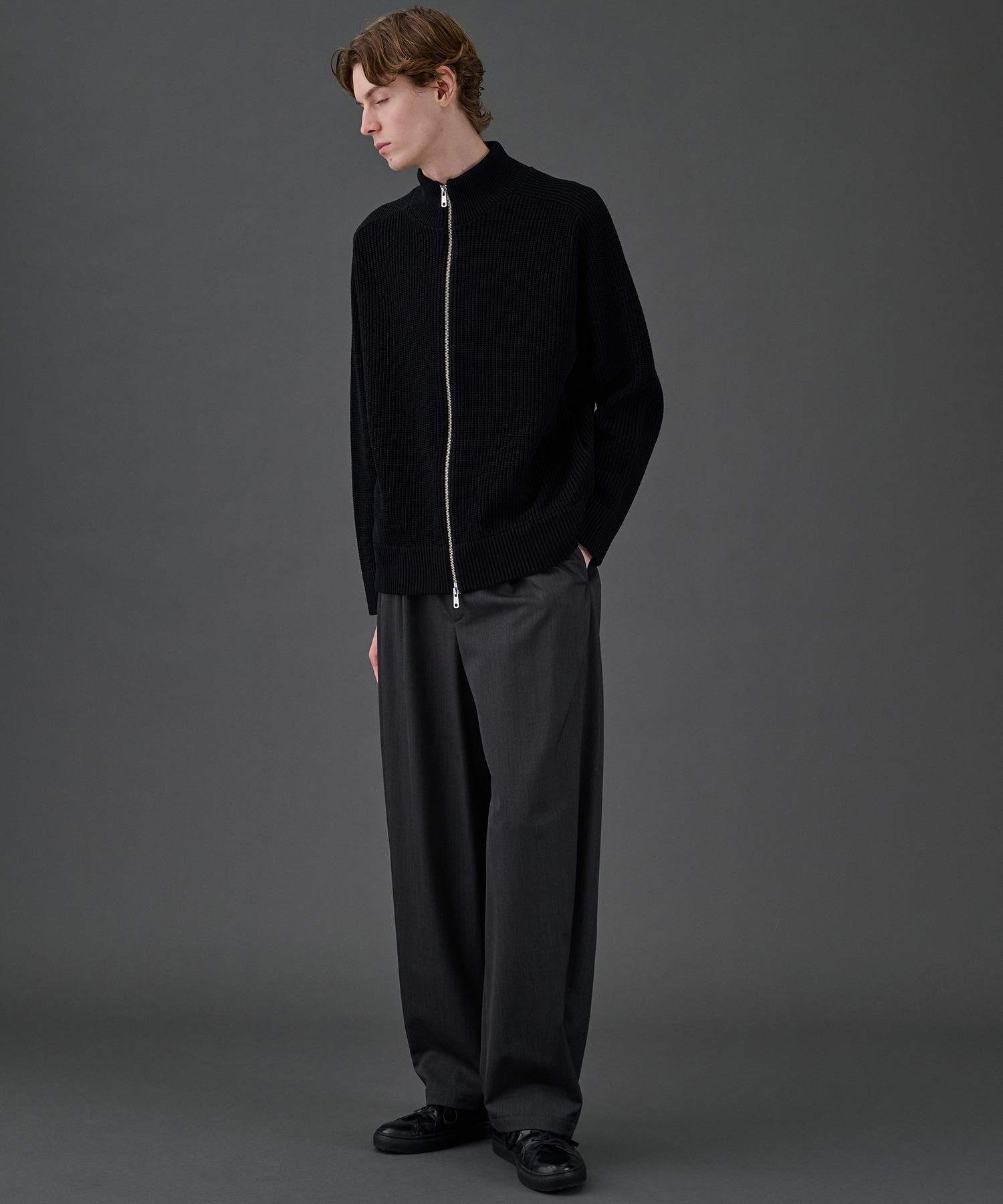 ・紡績と染色は世界3大ウール産地の1つと呼ばれている尾州で行い、織りはコットンが得意とされる泉州で超高密度に織り上げることで、ウール特有の上品なツヤ感とドレープ性がありながら、メンズらしいハリ感を兼ね備えたMADE IN JAPAN 素材