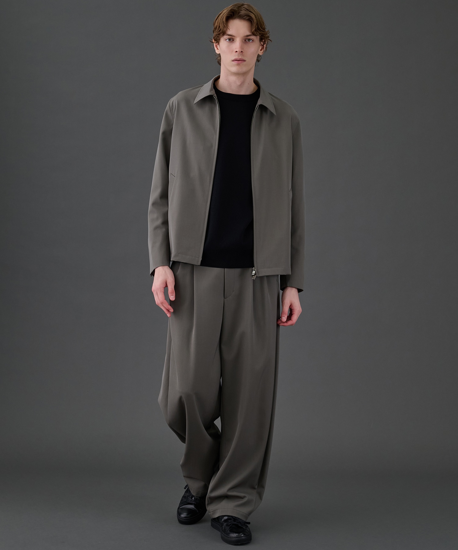 ・紡績と染色は世界3大ウール産地の1つと呼ばれている尾州で行い、織りはコットンが得意とされる泉州で超高密度に織り上げることで、ウール特有の上品なツヤ感とドレープ性がありながら、メンズらしいハリ感を兼ね備えたMADE IN JAPAN 素材