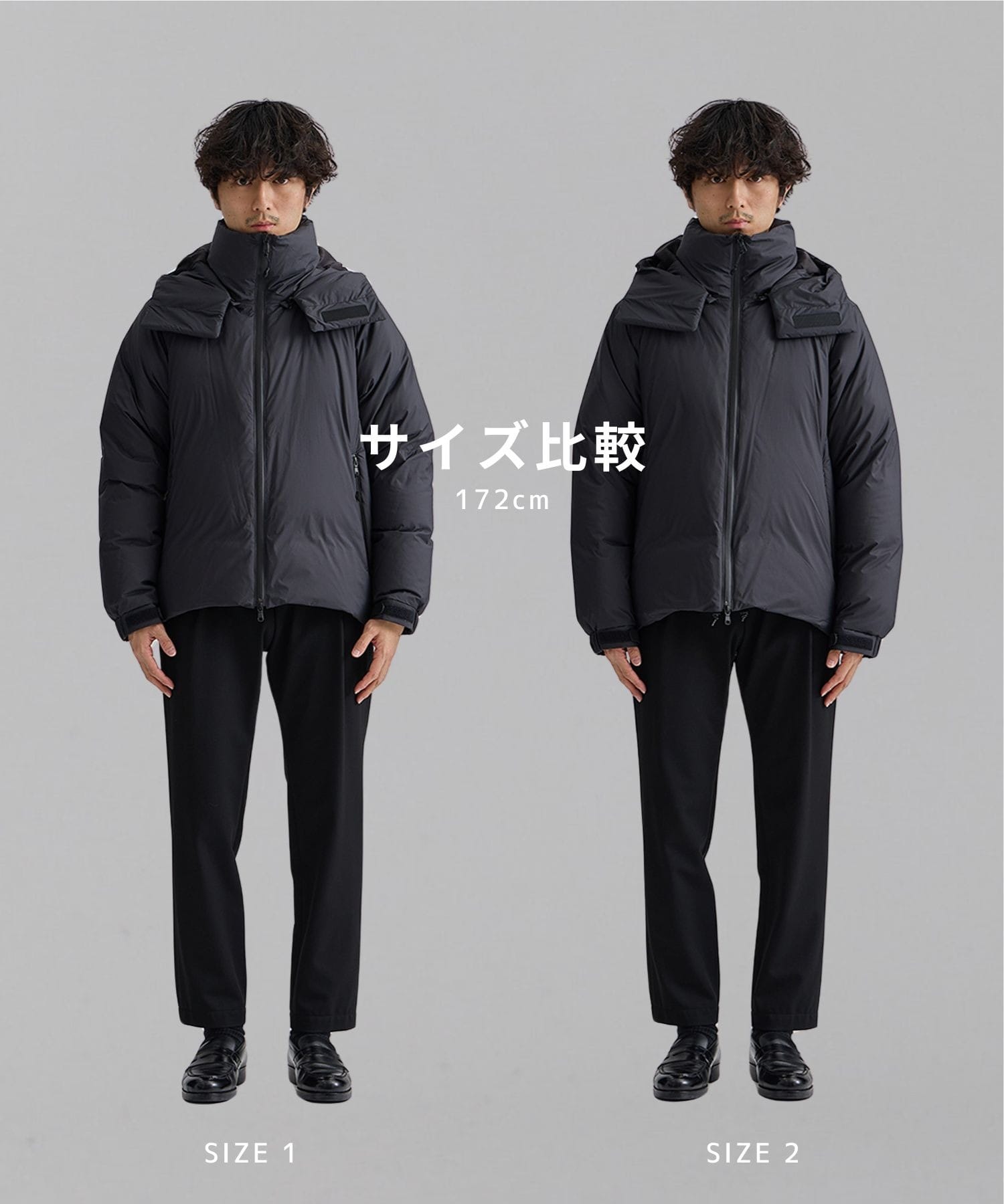 可能な限りステッチを表生地に出さず、すっきりと見えるパターンメイキングとフード脱着可能の2WAY仕様でフロントのボリューム感がよりモードな印象を与えてくれます。