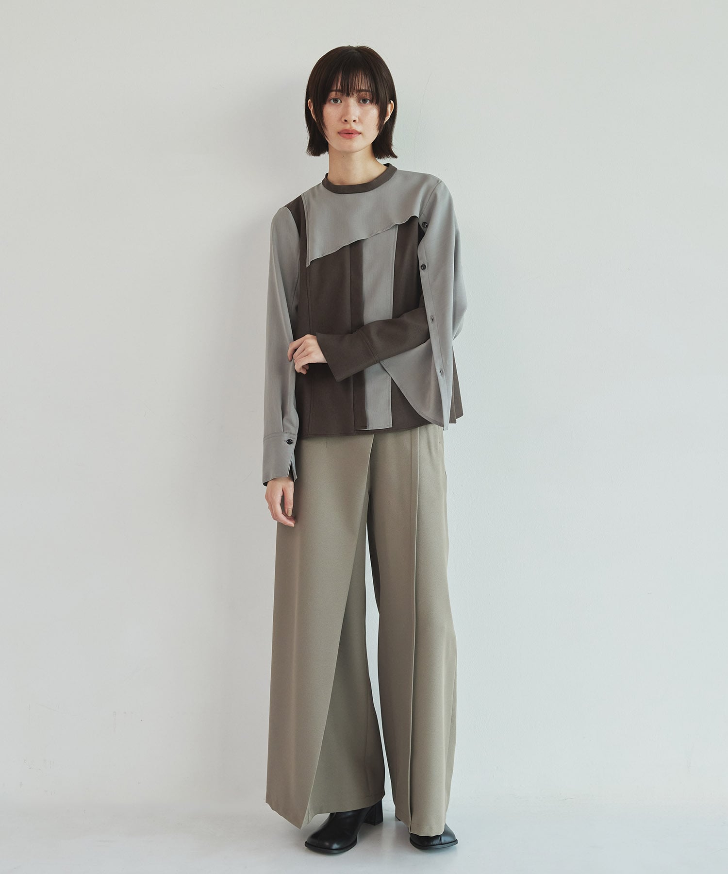 ・2wayのアシメケープデザインを施したブラウス